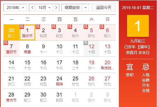 2019年國慶節(jié)放假通知